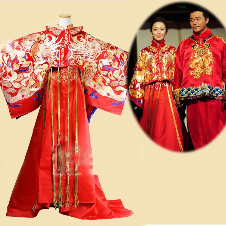 Related Product for and Tong LiYa Chen SiCheng Red Chinese Wedding Hanfu Couple Costume Sets Republican Period Wedding Bride and Groom Hanfu