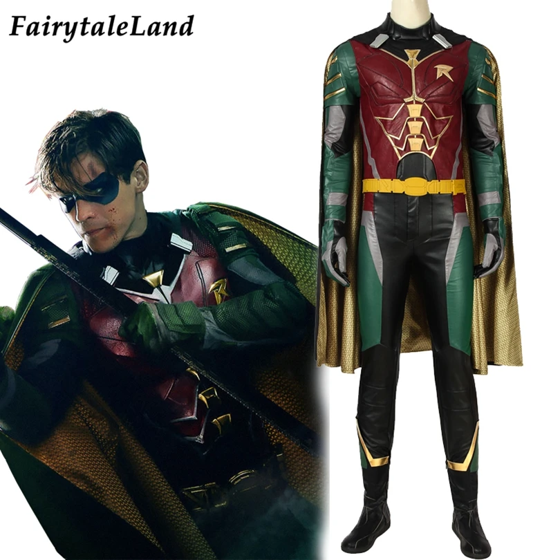 Buy Titans Robin Costume Halloween Cosplay Dick Grayson Nightwing Battle Outfit Fancy Superhero Party Suit Boots Custom Made and You will Save USD 131.58 or 34% %, Because You Just Pay for 255.42 not Full Price for 387.00